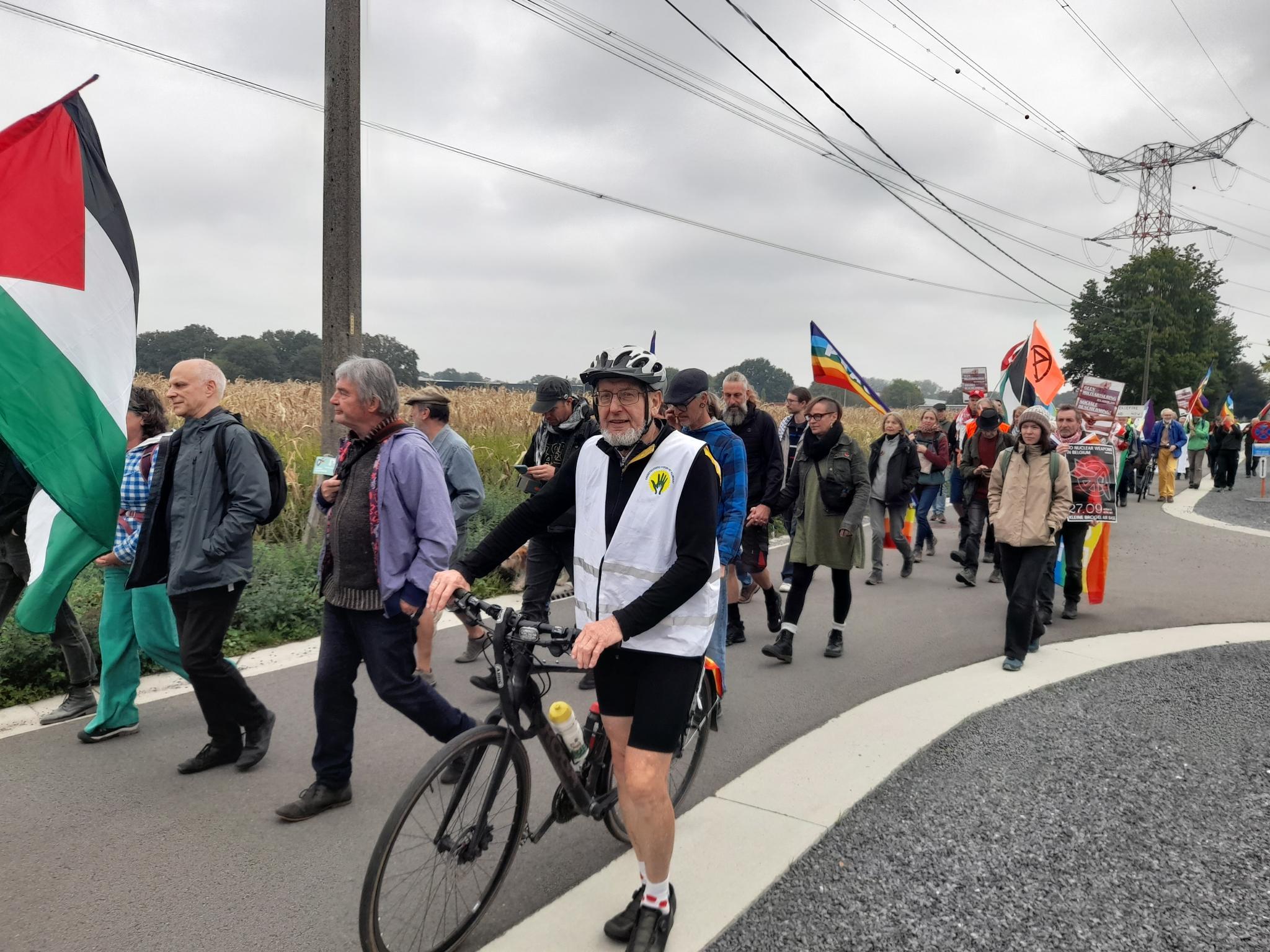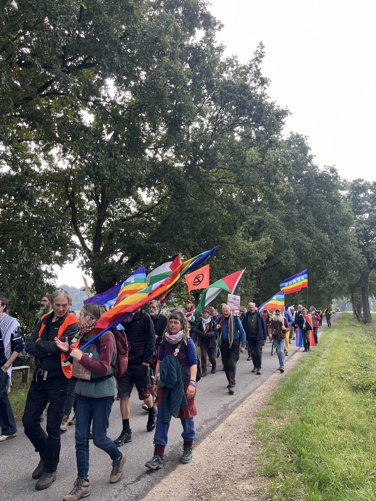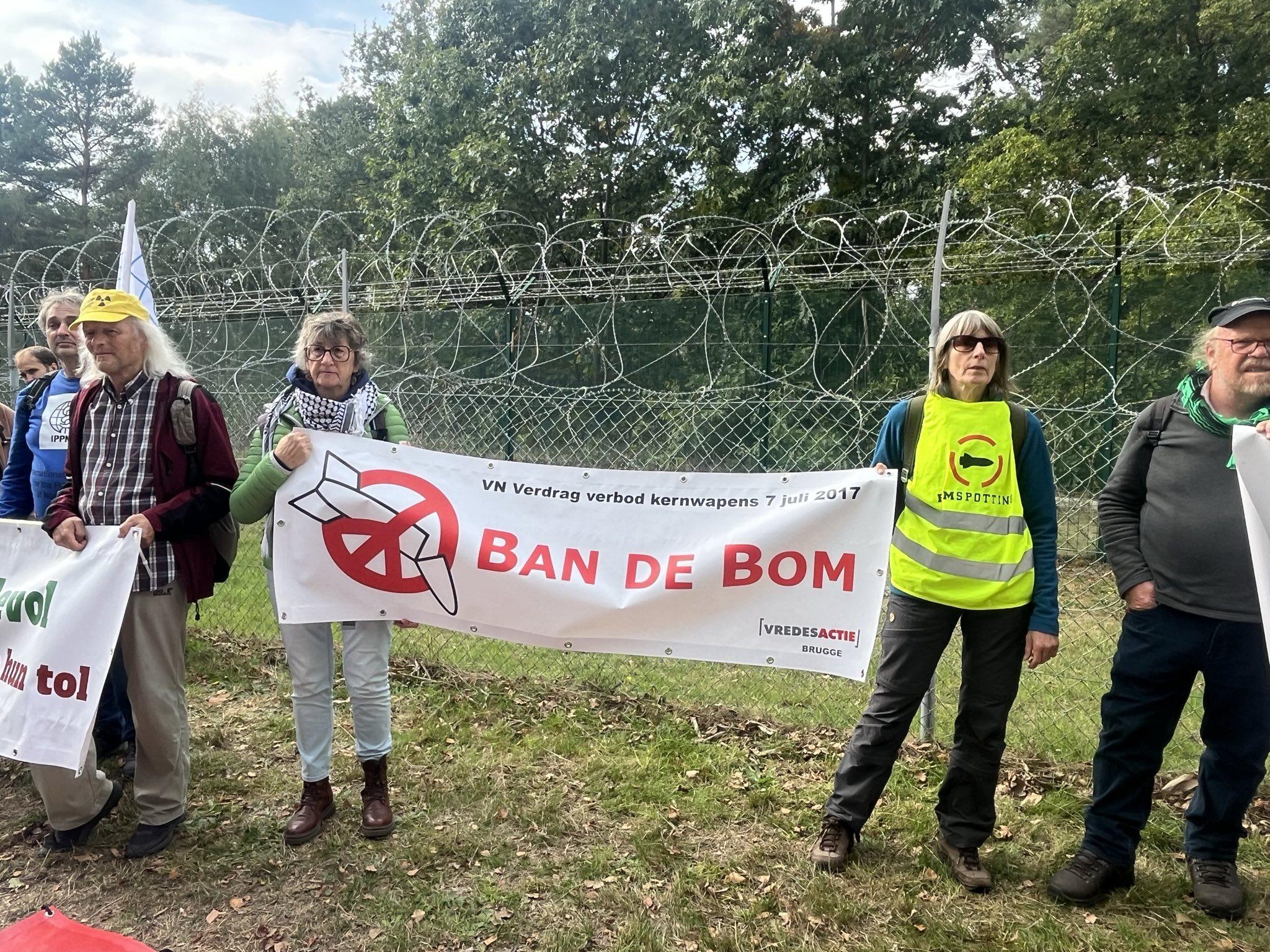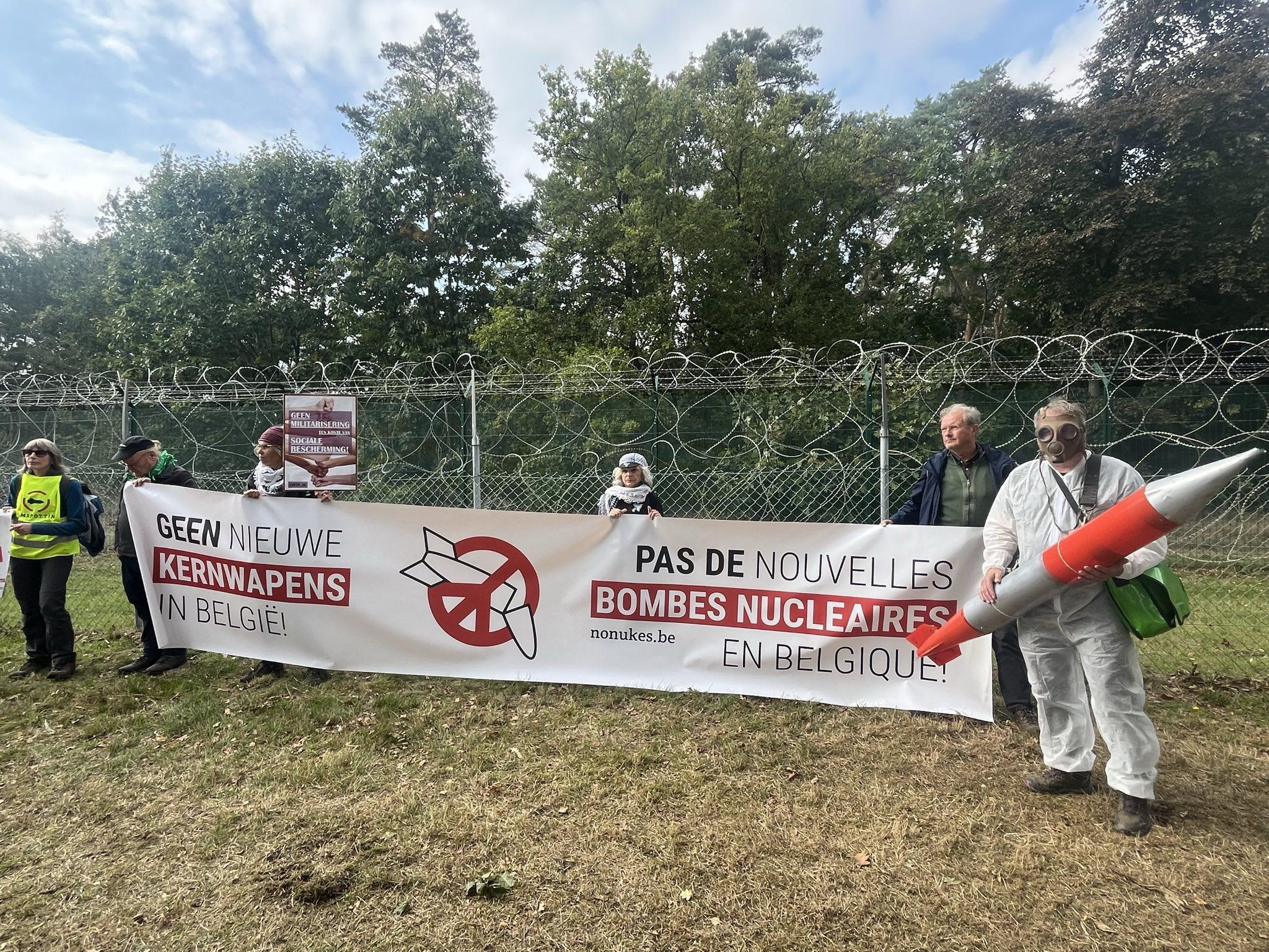 Vandaag namen 150 activisten deel aan een protestwandeling rond de luchtmachtbasis in Kleine-Brogel, waar naar schatting 15 tot 20 kernbommen van de Verenigde Staten opgesteld staan.